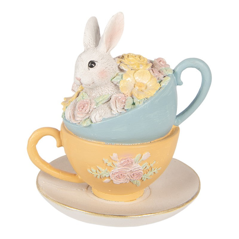 Decoratie konijn in kopjes blauw geel 15cm - Clayre & Eef